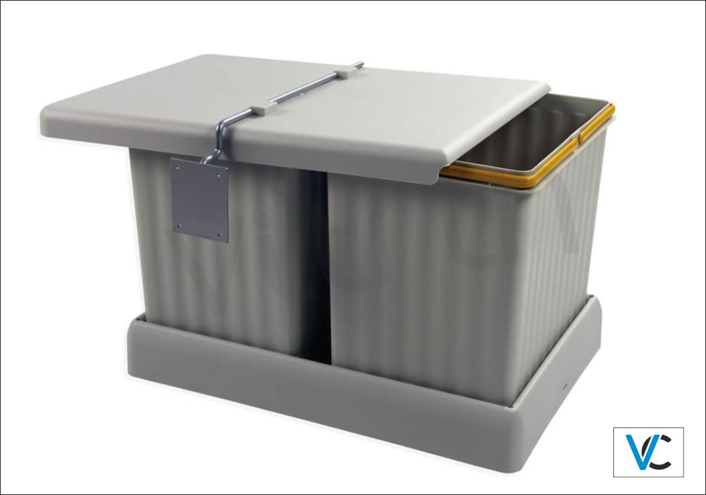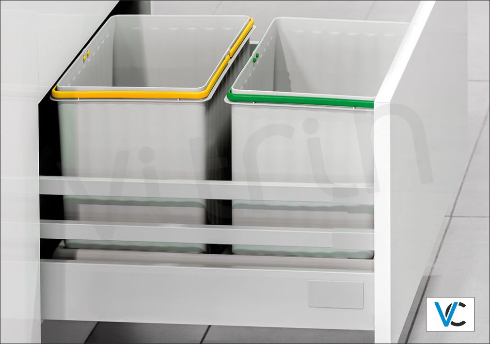 Κάδος απορριμμάτων και αποθήκευσης για συρτάρι με καπάκι που ανοιγοκλείνει αυτόματα με το άνοιγμα και το κλείσιμο του συρταριού.