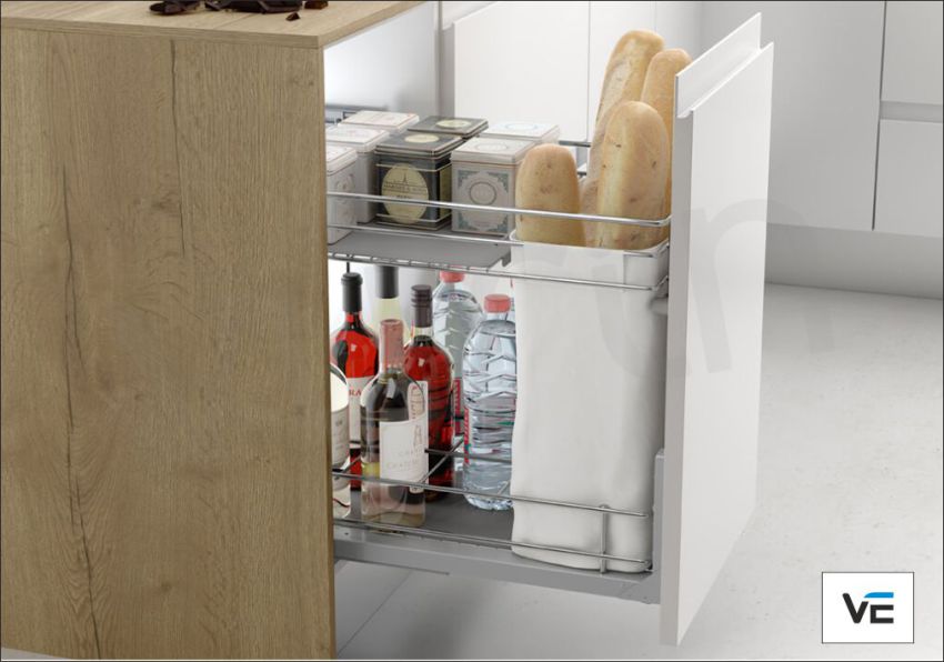 Συρμάτινο βαγονέτο πάγκου κουζίνας με ψωμοθήκη και χώρους για μπουκάλια και τρόφιμα, σε δυο μεγέθη