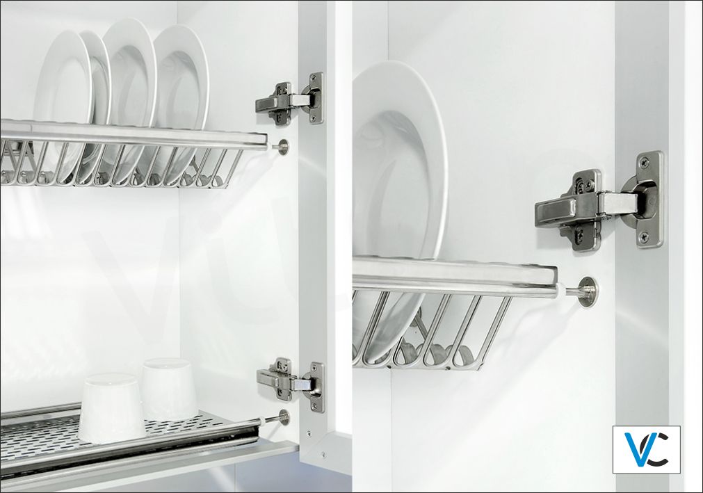 Ανοξείδωτη πιατοθήκη κρεμαστού ερμαρίου με ποτηροθήκη και δίσκο αποστράγγισης, σε πολλά μεγέθη.