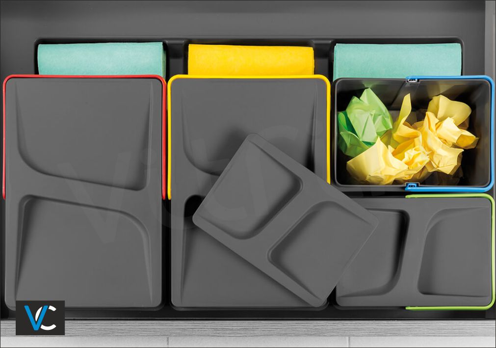 Σε ανθρακί απόχρωση με χερούλια διαφορετικών χρωμάτων για διαχωρισμό ανακύκλωσης.