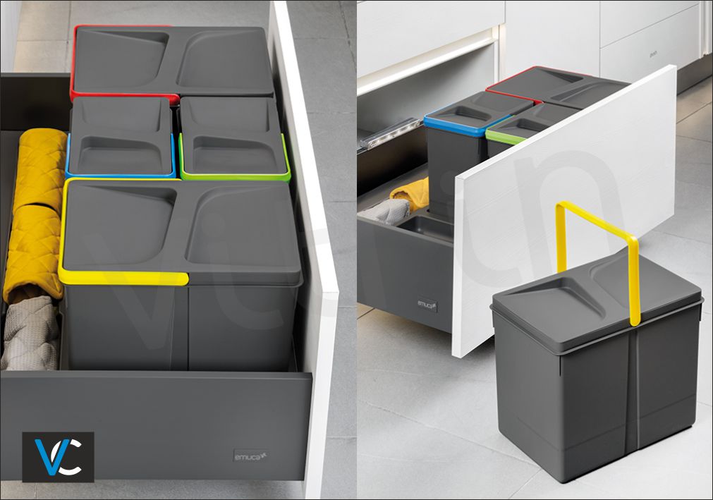 Δοχεία διαχείρισης απορριμμάτων σε συνδυασμό με βάση συγκράτησης για συρτάρι.