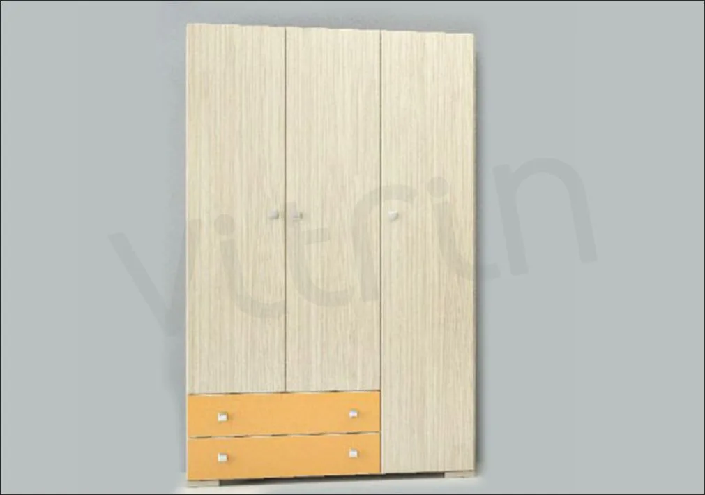 Ντουλάπα ανοιγόμενη απλού σχεδιασμού. Διαθέτει 3 ανοιγόμενα φύλλα πάνω έτσι ώστε να βάλετε τα ρούχα σας με την σωστή σειρά και από κάτω 2 συρτάρια έτσι ώστε να βάλετε διάφορα μικροαντικείμενα ή κάλτσες. Είναι μία ντουλάπα που μπορείτε να την τοποθετήσετε στην κρεβατοκάμαρα σας με άνεση για να σας εξυπηρετήσει άμεσα. Μοναδική και οικονομική ντουλάπα.