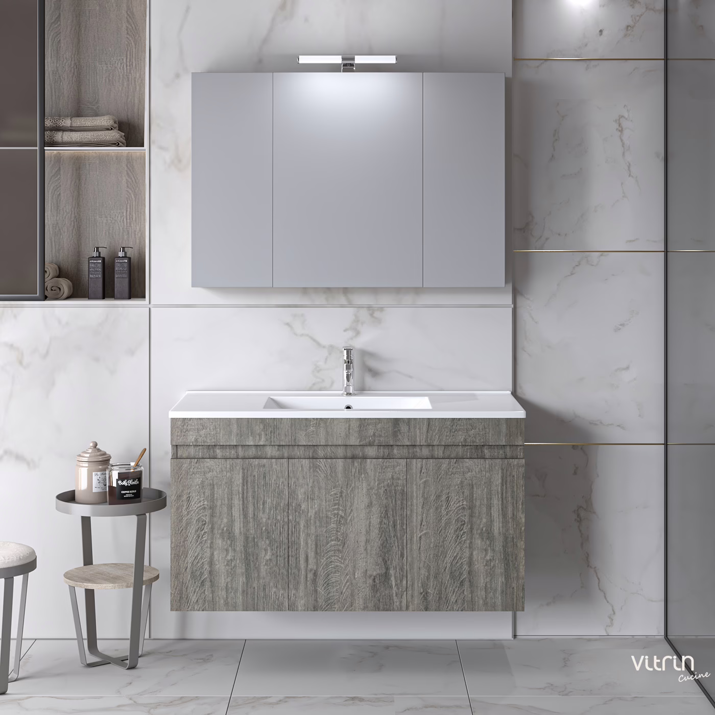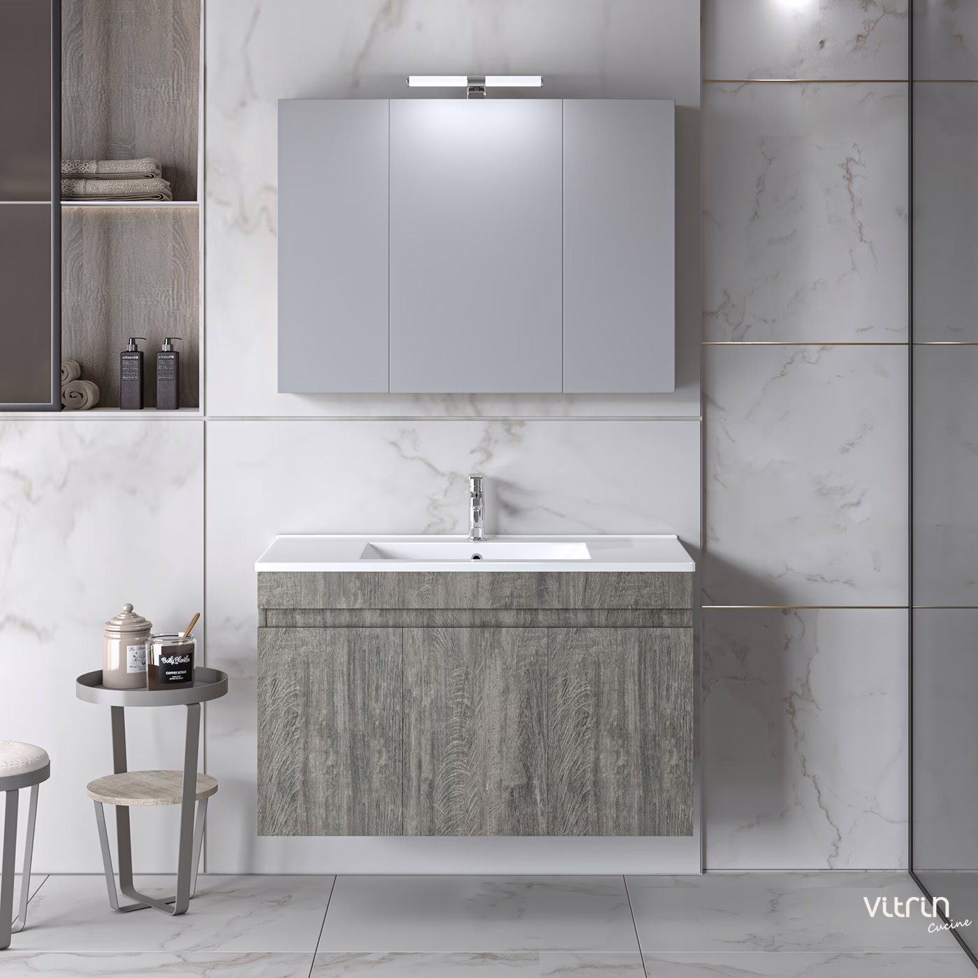 Το Σετ Έπιπλο Μπάνιου Omega σε απόχρωση BERLIN αποτελεί ένα στυλάτο και μοντέρνο σετ έπιπλο μπάνιο με εργονομικό σχεδιασμό αλλά και λειτουργικότητα. Ο χρωματισμός του έχει την υφή και την όψη του ξύλου σε αποχρώσεις του γκρι.