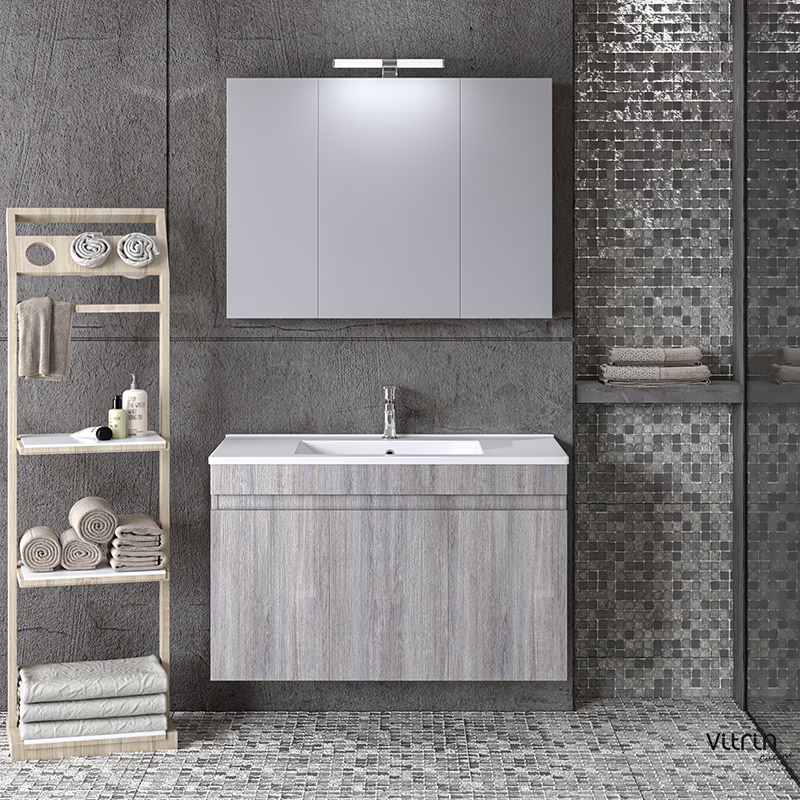 Το Σετ Έπιπλο Μπάνιου Omega σε απόχρωση GREY OAK αποτελεί ένα στυλάτο και μοντέρνο σετ έπιπλο μπάνιο με εργονομικό σχεδιασμό αλλά και λειτουργικότητα. Ο χρωματισμός του έχει την υφή και την όψη του ξύλου σε αποχρώσεις του γκρι.