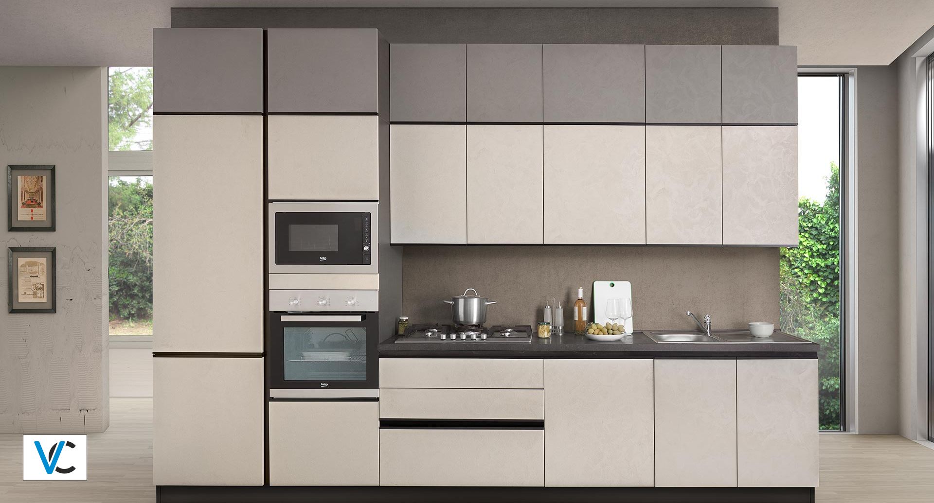 Μπορείτε να επιλέξετε την κουζίνα σας με λεπτά φινιρίσματα, λάρικα ή τσιμέντου.